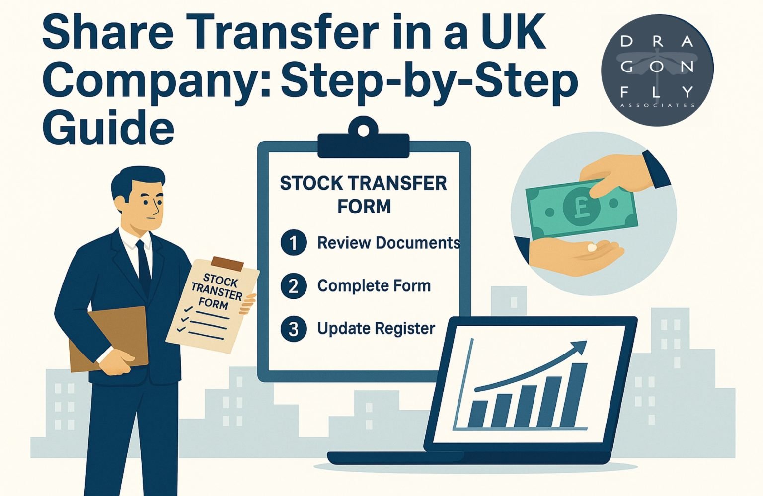 Dragonfly Associates offers end-to-end share transfer services, including document preparation, register updates, and optional HMRC assistance—available through our company management packages.